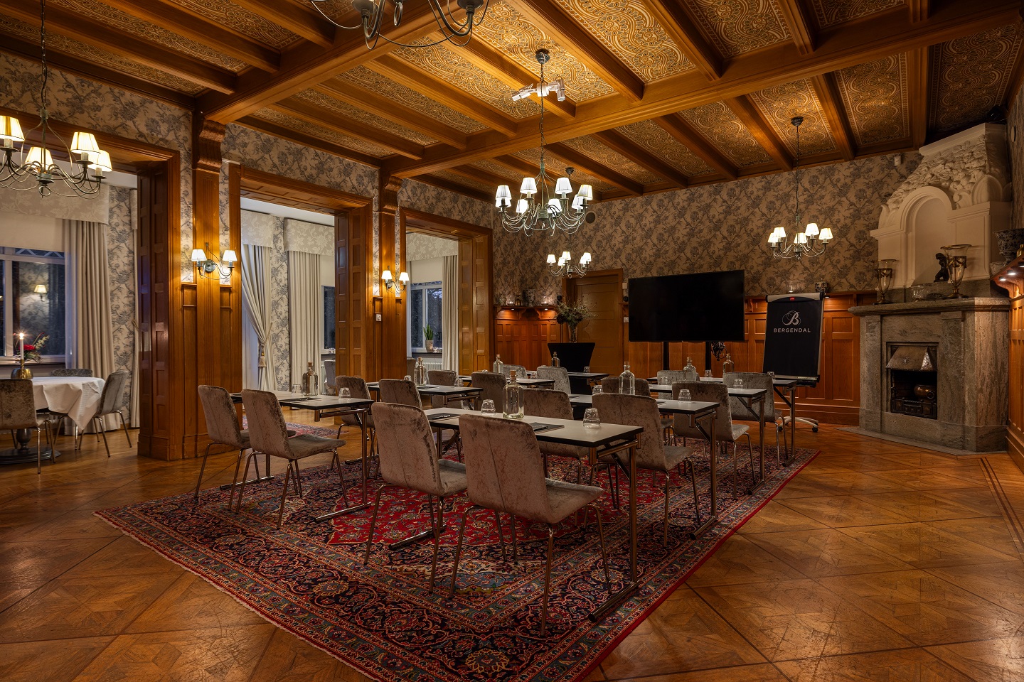 I herrgårdens nedersta plan ligger denna fina möteslokal. Stora herrgårdsmatsalen är en gemytlig lokal med generös takhöjd och bekväma möbler inramad av en genuin herrgårdsmiljö.