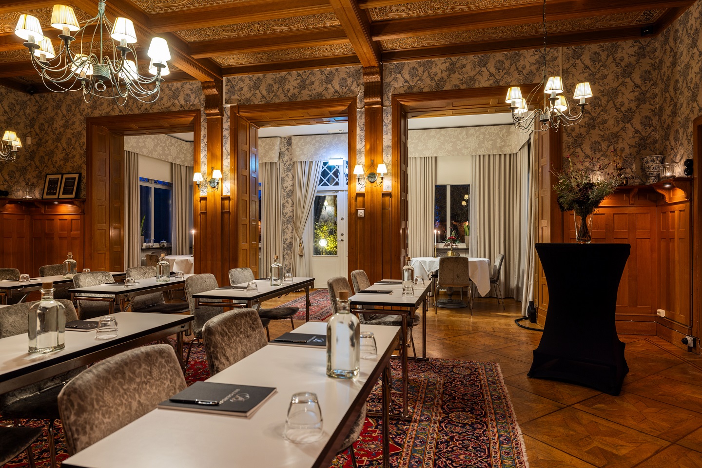 Är några av era gäster med via länk eller behöver ni spela in mötet? I Stora herrgårdsmatsalen finns både kamera och ljudupptagning via extern ljudpuck som vi sätter ut i lokalen som plockar upp ljudet i rummet (behöver förbokas). Allt ni behöver ha med er är en egen laptop med videomötesprogram, tex. Teams eller Zoom.