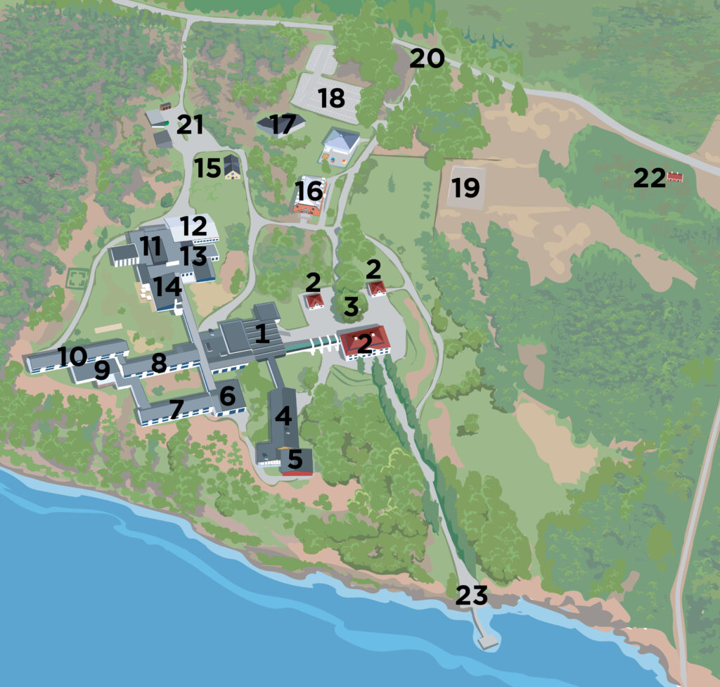1. Huvudentré & lobby. Konferenslokalerna: Edsviken, Borgenviken, Landsnora, Skogsvik, Sätra Äng, Kärrdal, Kummelby, Kvarnskogen
